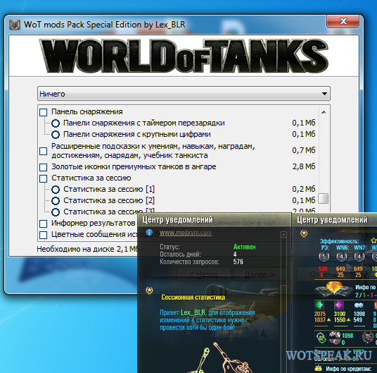Очередной легальный модпак от Lex_BLR для World of tanks. Оснащен удобным установщиком, подсказками ко всем устанавливаемым модам, скриншотами с изображением модификаций.