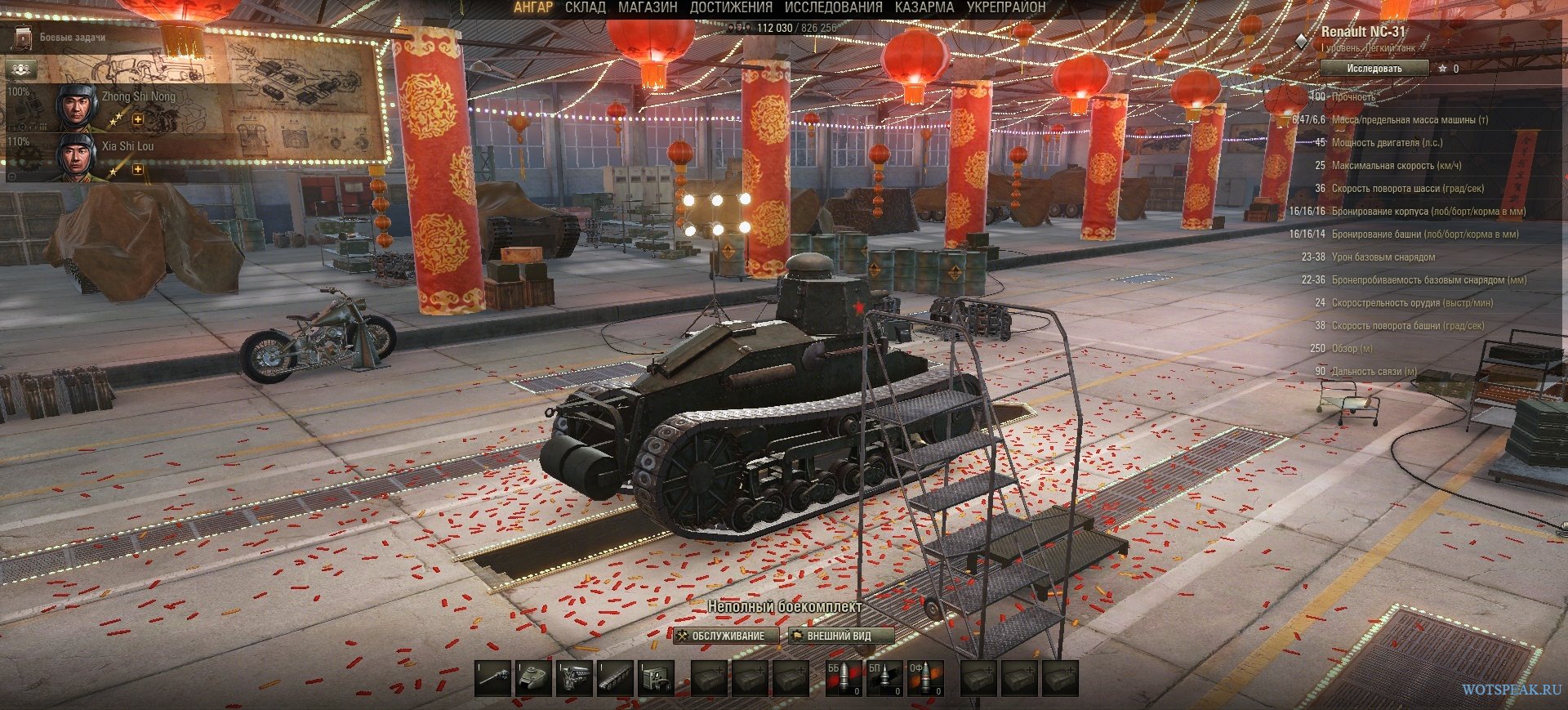 Китайский ангар в стиле фэншуй для World of tanks 0.9.8 сделан на основе одной из версий премиумного ангара и украшен различными соответствующими атрибутами. Красивая подсветка, ленточки и шарики создают праздничную атмосферу в вашем танковом гараже. Разобраться в тонкостях фэн-шуя нам не удалось, но будем надеться, что все предметы расставлены в соответствии с основными требованиями этой китайской науки. В целом ангар оформлен в очень приятных тонах и создает ощущение уюта и спокойствия.