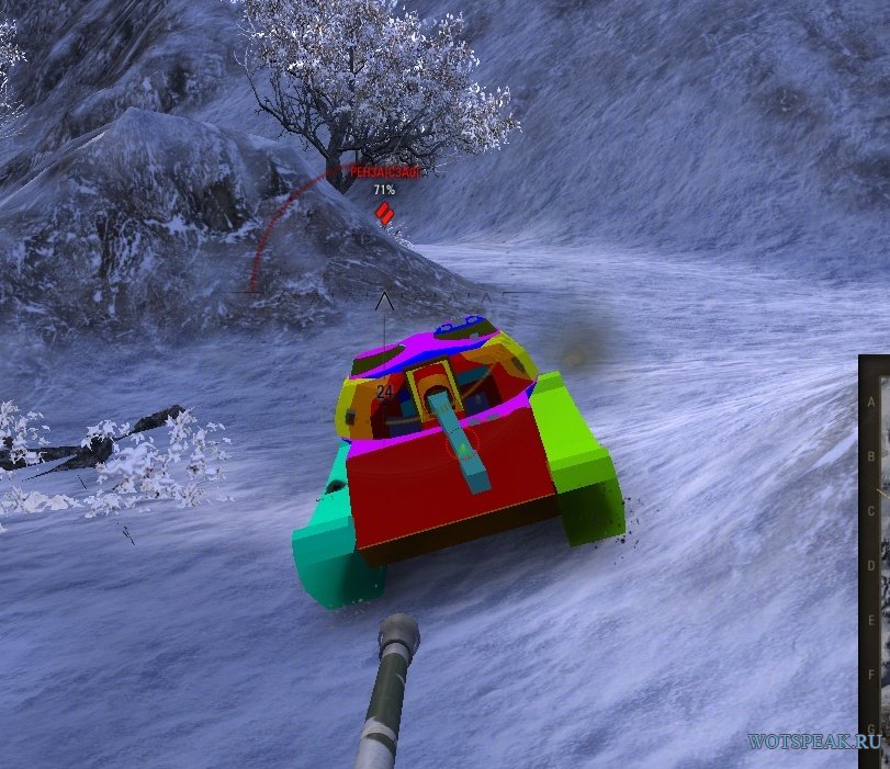 Мод Хамелеон для World of tanks 0.9.15.2 заменяет обычные шкурки танков на 3D вариант. При чем включается такой режим отображения танков врагов только в снайперском прицеле. В отличии от стандартного хамелеона, в этой модификации используется улучшенная цветовая градация. При попытке выцелить танк противника, вы сможете четко увидеть, где находятся различные башенки, фальшборты, гусеницы, слабо защищенная крыша танка. Кроме того, более заметными станут результаты произведенных выстрелов, как ваших, так и ваших союзников. Отметки, которые остаются после попадания в танк, станут более отчетливыми. Вы сможете понять, куда танк врага был пробит, а где его броня выдержала натиск снаряда.
