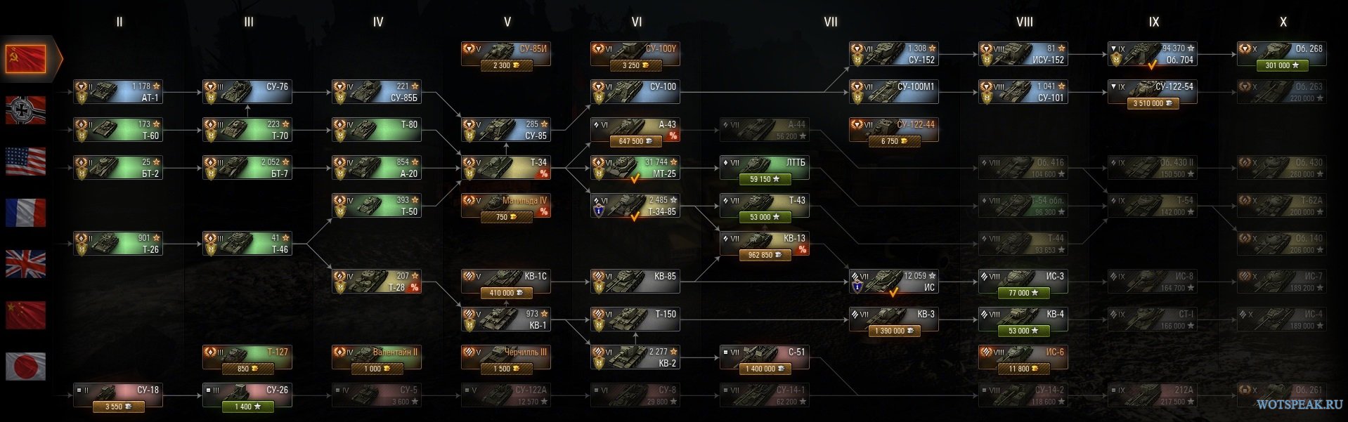 Цветные иконки танков в ветке исследований и послебоевой статистике World of tanks 0.9.15.1.1 WOT