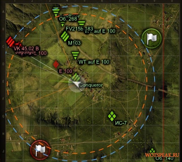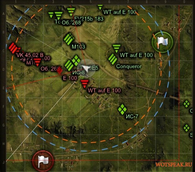 Еще один отличный мод на миникарту взятый с европейского сервера и переделанный под русский сегмент мира танков. Главной отличительной чертой является наличие HD карт. Что это значит? Это значит увеличение качества прорисовки до высокого разрешения. Основные маркеры которые выводятся данной миникартой - круг для определения момента засвета по рентгену, круг для определения максимальной дальности стрельбы из артиллерии, квадрат максимальной видимости танков, настройки для взвода, указатель направления корпуса вашего танка, углы горизонтальной наводки.