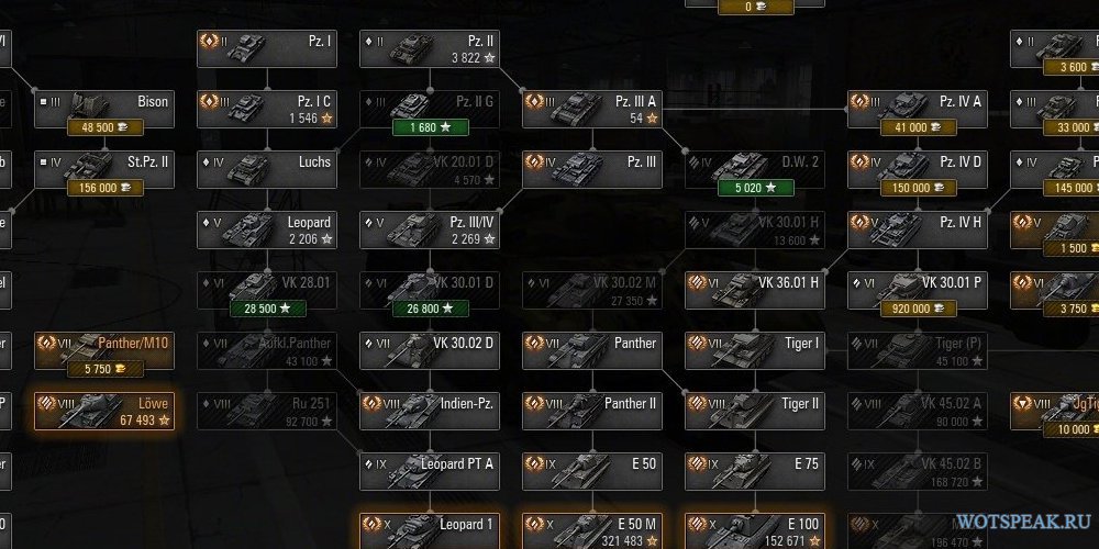 Вертикальное дерево развития для World of tanks 0.9.16 WOT