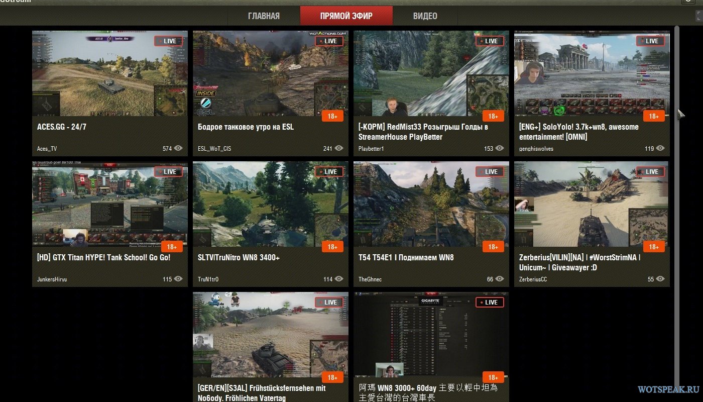 WG Stream - мод для просмотра стримов и видео про World of tanks из игрового клиента WOT 0.9.15