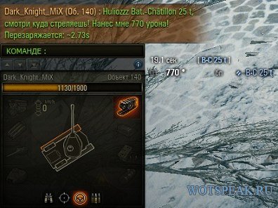 Мод Damage Announcer добавит в личный чат лог полученного урона для World of tanks 0.9.16. При попадании снаряда в ваш танк в чатлоге будет выводится информация о том какой танк в вас выстрелил, каким снарядом и что произошло после контакта снаряда с вашей броней (пробил, не пробил, рикошет и так далее). Данная информация будет доступна только вам. Другие участники боя ее видеть не будут. Кроме того, мод выводит в общий чат информацию после выстрела по вам артиллерии. Союзники будут знать кто из артоводов отстрелялся и какое примерное время он будет перезаряжаться. Вы можете отключить эту функцию. (см. раздел Настройка)