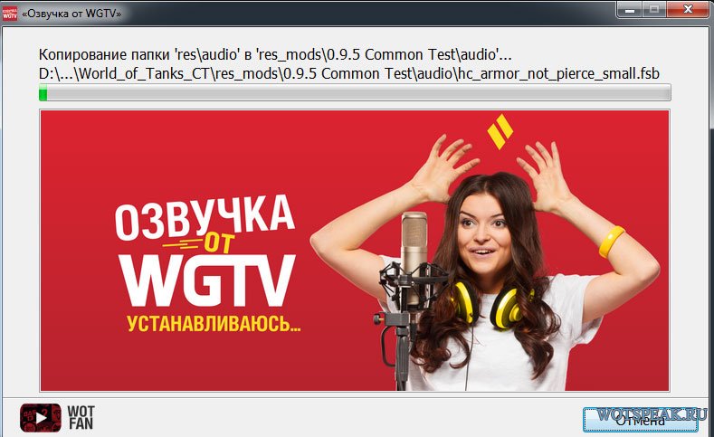 Отличная озвучка от Варгейминг Тв для World of tanks 0.9.15.2, в состав которой входят сразу три варианта набора звуковых фраз экипажа. Популярные ведущие официальных программ Wargaming Кирилл Орешкин, Ольга и Ася неплохо потрудились и сделали отличный подарок для всех фанатов их творчества. Теперь наслаждаться их голосами вы сможете не только просматривая ролики на ютубе, но и во время горячего танкового боя. В архиве есть удобный установщик, в состав которого входят все три версии звуковых модификаций. Вам достаточно выбрать голос вашего любимого ведущего и указать папку с установленный клиентом World of tanks.