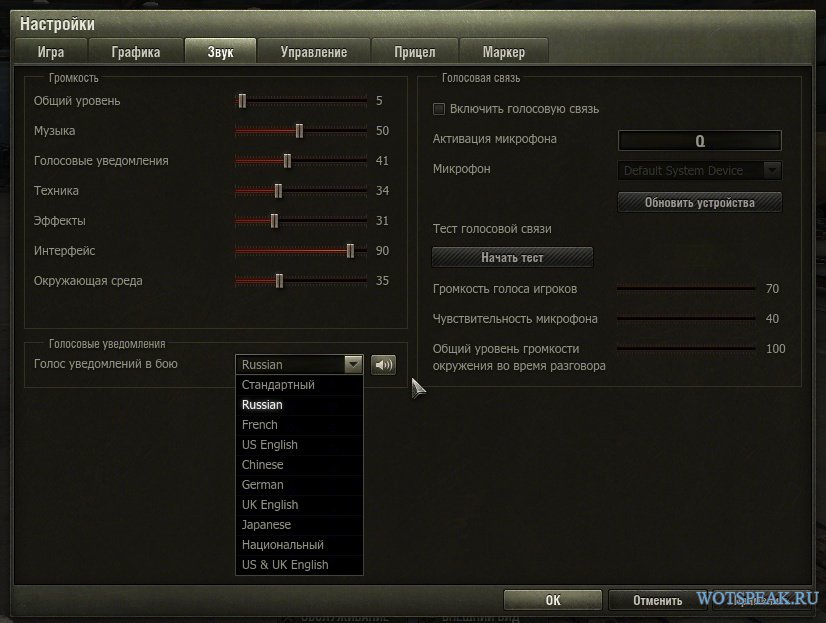 Быстрая смена и выбор языка озвучки экипажа для World of tanks 0.9.15.2 WOT