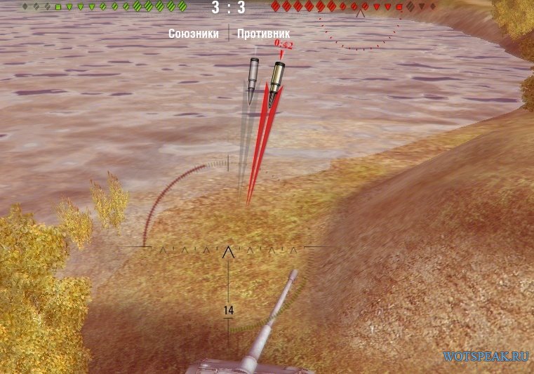Индикатор направления дамага в виде пули World of tanks 0.9.15.1.1 WOT (2 варианта)