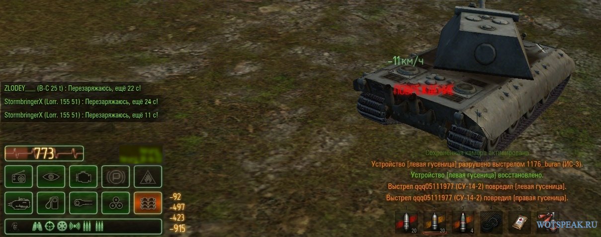 Было улучшено отображение данных о состоянии модулей и членов экипажа, показатель скорости танка выведен на центр дисплея, добавлен лог полученного урона вашим танком, индикация текущего количества очков здоровья вашего танка стала более заметной.