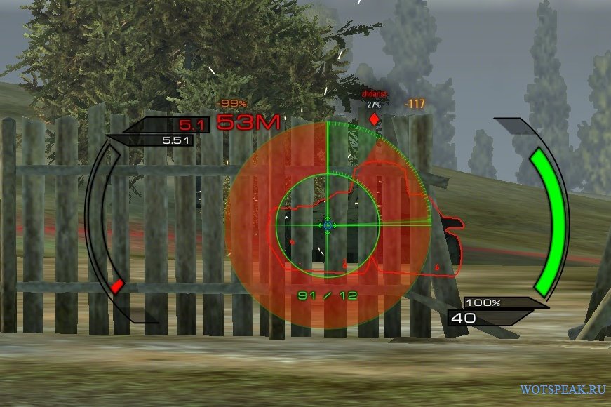 Отличный прицел Taipan с индикатором толщины брони для World of tanks 0.9.16 предназначен для облегчения процесса уничтожения врагов на полях сражений Мира танков. Прицел отображает на экране все необходимые параметры: расстояние до машины врага, общее время зарядки, процент оставшихся очков здоровья у вашего танка и так далее. Сведение у прицела имеет одну приятную особенность. Оно показывает толщину брони танка и уровень бронепробития вашего снаряда. Очень удобное решение, которое помогает определить сможете ли вы пробить врага. В зависимости от цвета индикатора, вы сможете принять решение о целесообразности выстрела. Если цвет зеленый - можно смело стрелять, если индикатор окрашен в красный или желтый, то лучше поискать место в броне по-слабее.