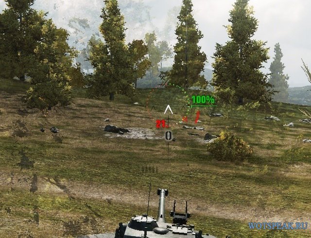 Кроме того, маркер прицела изменяет цвет в зависимости от толщины брони в той части корпуса врага, в которую вы целитесь. Если цвет маркера горит зеленым - можно смело стрелять. Красный цвет говорит о том, что пробить врага не удастся.