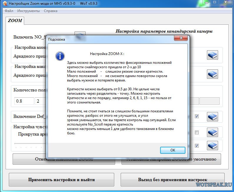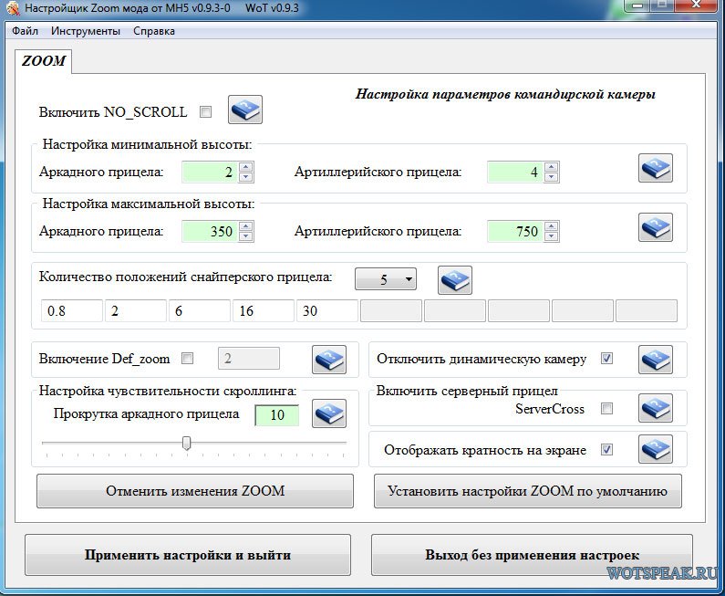 Программа для настройки ZOOM, Nosсroll, командирского обзора World of tanks 0.9.3